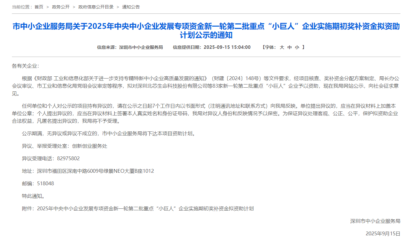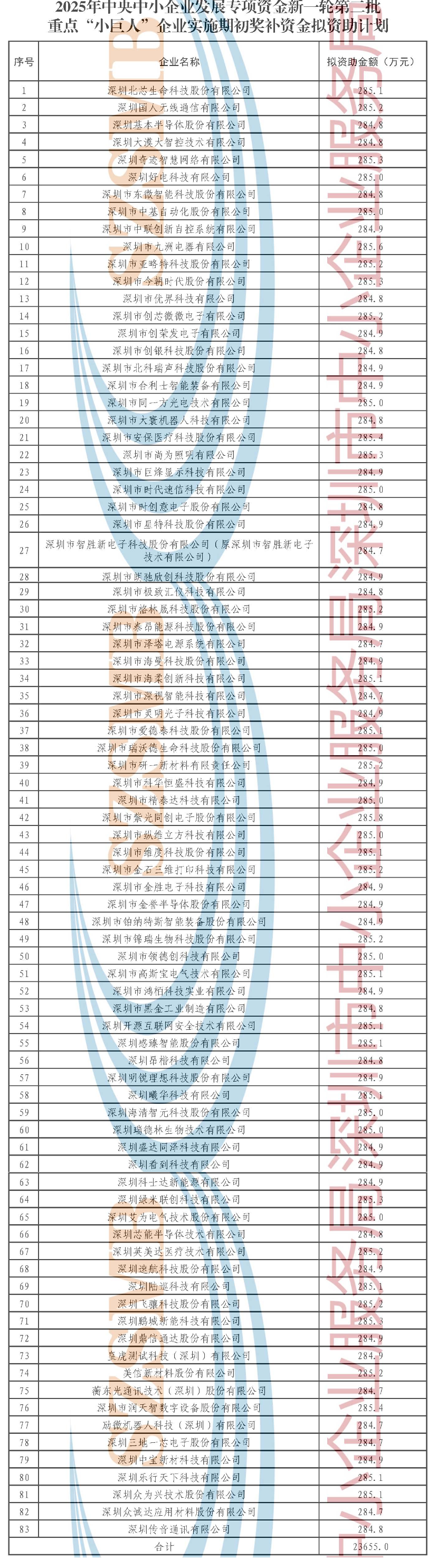 深圳市最新公示的2025年中央中小企业发展专项资金新一轮第二批重点“小巨人”企业名单中,83家入选企业展现出了明显的硬科技特征。